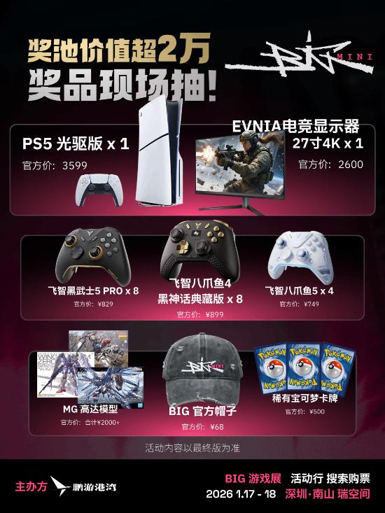 展会两天都有多个抽奖时段,总抽奖彩池价值超过两万元。包含PS5,奕威显示屏,飞智手柄,高达模型,宝可梦周边及卡牌.......