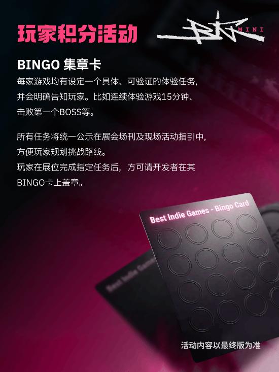 1.BINGO集章:BIG展会使用了BINGO的集章模式,鼓励到场的玩家们在玩游戏中找到专属于自己的展会足迹。