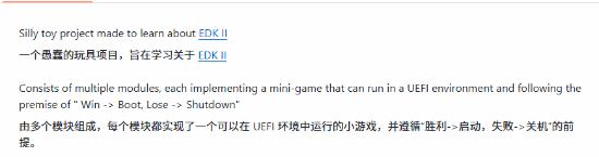 而UEFIGames就是EFI应用程序,在加载正常操作系统前必须先进行游戏,如果成功通关,才会引导至操作系统分区;失败的话系统会嘲笑你并直接关闭。