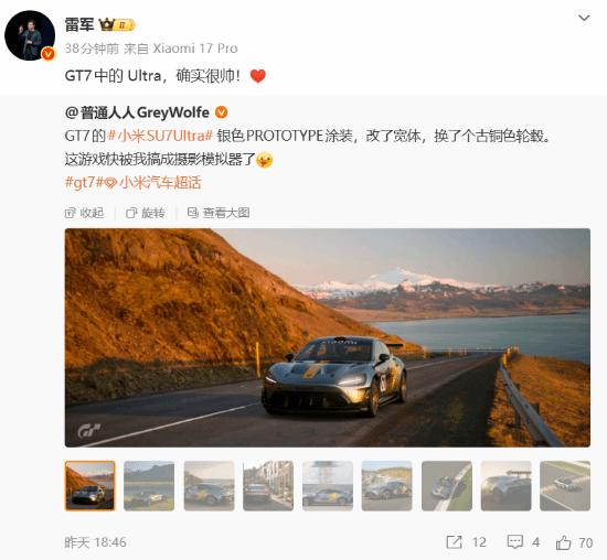 小米集团董事长雷军第一时间转发该动态,并称 “GT7中的Ultra,确实很帅!” 。
