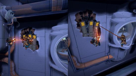 当一名玩家用光束炮熔化横梁的同时,另一名玩家就能用废料钩爪将其移开!只有共同思考、灵活搭配,才能将工具的作用发挥到极致!