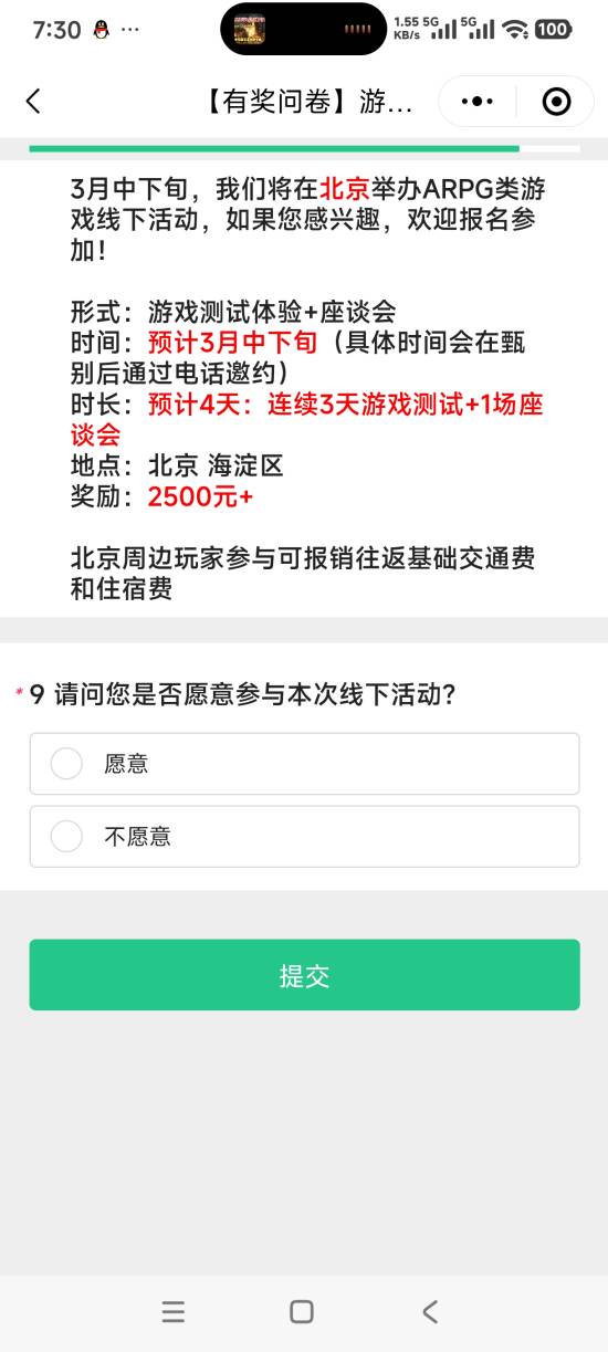 他指出,微信公众号“腾讯游戏大玩咖”近日发布了一份新的调查问卷,问卷选项中出现了《影之刃》、《雨血:蜃楼》等相关作品。值得注意的是,问卷最后明确提到,将在3月中下旬于北京海淀区开启一次ARPG游戏试玩活动。巧合的是,《影之刃零》的开发商灵游坊正位于北京海淀区。