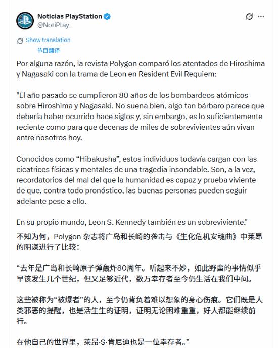 近日,外媒Polygon发表文章,将广岛与长崎原子弹爆炸事件,与《生化危机9:安魂曲》中里昂的剧情设定进行了对比。