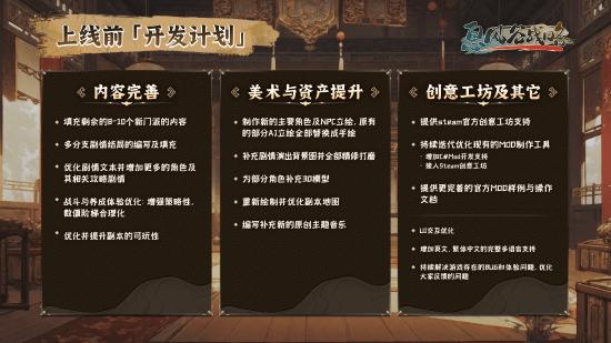 作为由一群志同道合的github程序员兼武侠爱好者们组建而成的团队,自《群侠传,启动!》开始他们便一直非常注重开发过程中和玩家的沟通交流。此外,官方还曾表示《息风谷战略》将不会采用EA模式,发售即为1.0正式版,这无疑大大提高了玩家们对这款游戏的期待。