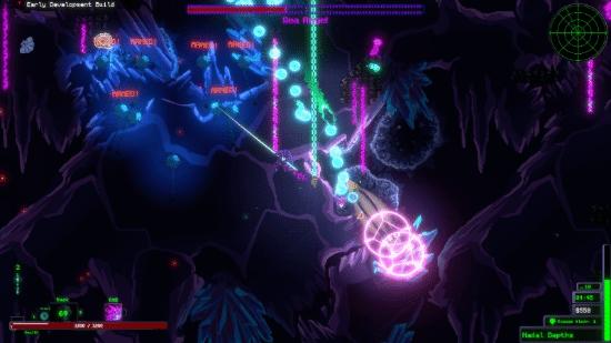 构筑强力组合—在肉鸽玩法的永久死亡机制之下,每一次下潜都可能是终点,唯有适应者方能存活,因此玩家需要努力收集资源、升级装备、改造武器库,构筑自己的的一套强力组合,最后在重重危险的局面下生存下去。