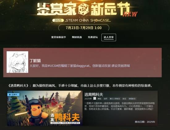 由bilibili游戏发行、旗下自研团队“碳酸小队”倾力打造的鸭子题材单人俯视角撤离射击游戏《逃离鸭科夫》,已于7月23日登录蒸汽平台“鉴赏家新品节”开启试玩。一年一度的蒸汽平台鉴赏家大会,在今年全面升级为“鉴赏家新品节”,活动于7月23日开启,持续至7月29日1:00。玩家可在期间免费体验这款将硬核战术生存射击与可爱搞怪鸭子巧妙融合的独特作品,开启一场别开生面的搜打撤大冒险!