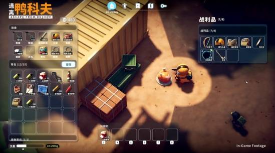 《逃离鸭科夫》是一款以可爱搞怪的鸭子为主角的俯视角PVE撤离射击游戏。游戏的核心玩法围绕“搜刮、战斗、撤离”展开,玩家将扮演全副武装的“战术鸭”,深入危机四伏的战场,获取物资,发展壮大自己的生存基地。与对抗性强的3D写实搜打撤离游戏不同,《鸭科夫》采用了鲜明的3D卡通画风,敌人设计也充满卡通趣味,为硬核玩法披上了一层轻松幽默的外衣。