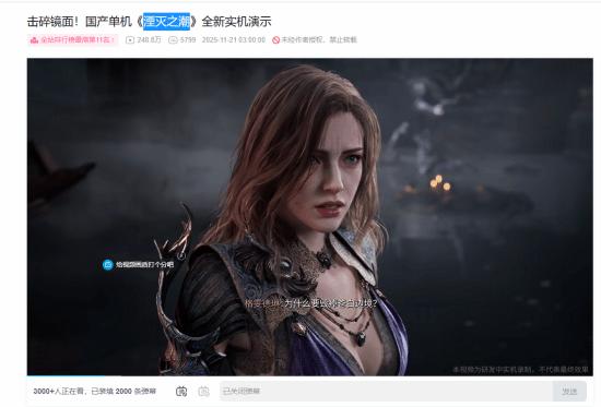 截止至发稿时,《湮灭之潮》B站官号发布的新实机演示播放量已突破248万次,并且仍有超过3000人正在观看!