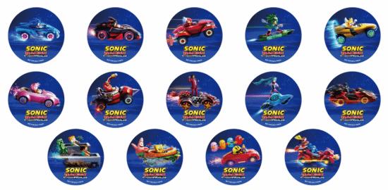 试玩游戏或参与4人对战赛,即可得索尼克赛车马口铁徽章(共14款,随机1款)。