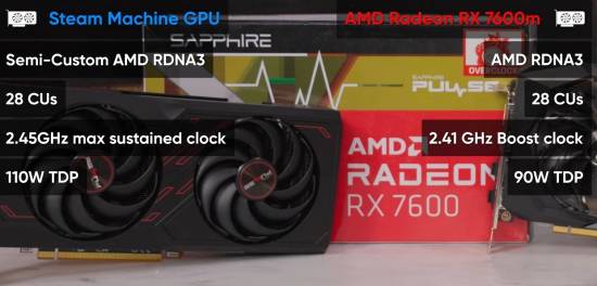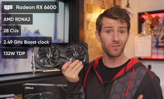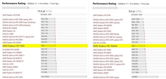 对游戏来说最重要的GPU配置,老莱认为规格相近的Radeon RX 7600台式机显卡与移动版7600M的性能差别过大,选择上代产品RX6600更合适: