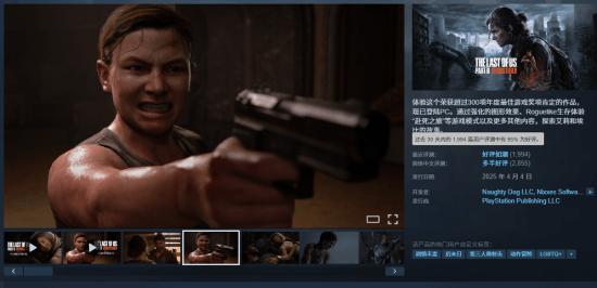 近日,Steam 平台数据显示,此前登陆 PC 端的《最后生还者 2:复刻版》简中口碑持续向好,近 30 天内玩家好评率高达 95% “好评如潮”。