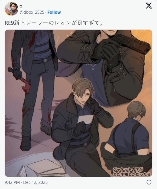 里昂向来不乏粉丝追捧,而这位国家安全战略局特工的中年形象,更是在 X 平台上收获了大量日语用户的好评,还被大家亲切地称作 “帅气熟男”。有用户感慨道 “里昂渐渐变成帅气大叔了”;还有用户晒出截图评论 “里昂越老越有范儿”;另有一位用户总结道:“《生化危机 9》里的里昂也太有魅力了。到 2026 年他都 49 岁了吧?真是风度翩翩。”