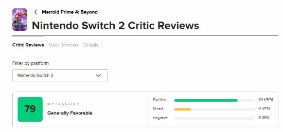 《银河战士Prime 4:超越》口碑已解禁,M站媒体均分79分。其中30家媒体给出好评,8家媒体给出中评,0家媒体给出差评。