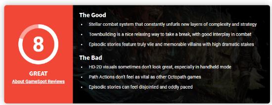 今日,角色扮演游戏《八方旅人0》媒体评分解禁,GS为本作打出8分评价。