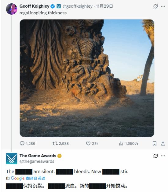 一年一度的The Game Awards颁奖典礼即将在北京时间12月12日举行。主持人 Geoff Keighley曾在Twitter上发布了一张神秘的游戏截图。