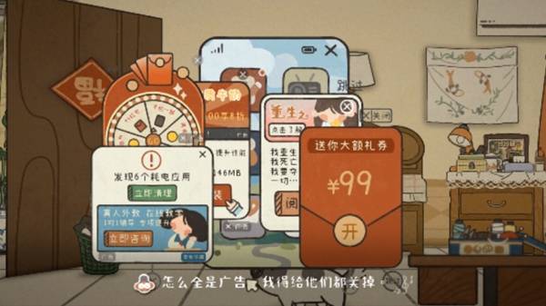他们大部分不擅长使用智能设备,很难在网上为自己发声,甚至连使用智能设备都是一大麻烦,所以在游戏中设计了几段关于“数字鸿沟”的剧情。比如不断弹出广告的病毒弹窗、老年人手机误触静音键等等。