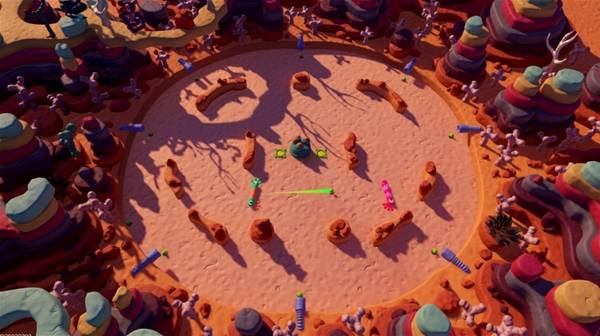 在游戏中,玩家操控的是名为“Mewts”的小黏土虫。它们能冲刺乱窜,抓住自己的尾巴,把自己变成“活体弹弓”直接发射。