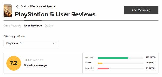 而另一边,截至发稿,游戏已在PS商店收获4830个评分,其中88%的玩家给出了5星好评,均分4.70。M站则收录了291个玩家评分,其中66%为好评,均分7.2。