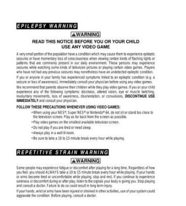 你们不是说我不承担的责任吗?那我花钱按要求改不就完了嘛,所以还是在 1993 同年,任天堂就立刻修改、加印了一波说明书,在 SNES 说明书首页,添上了癫痫警告的提醒。