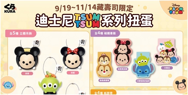 藏壽司迪士尼《Tsum Tsum》經典角色化身壽司公仔 9/19 超萌現身、堆疊系壽司「肉潮海派祭」