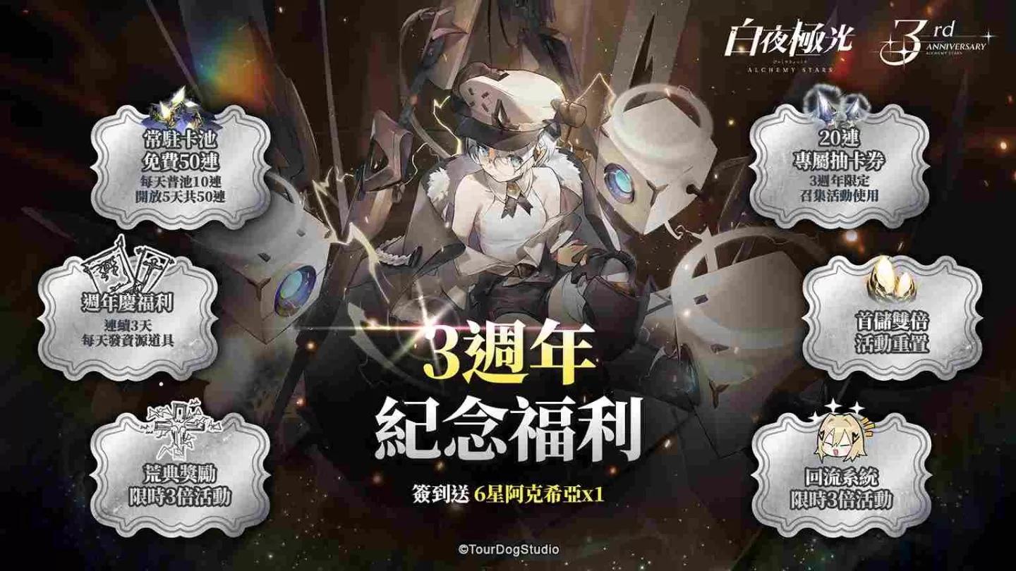 《白夜極光》三週年慶典正式起跑!50 連抽、六星光靈「阿克希亞」歡樂登入免費送
